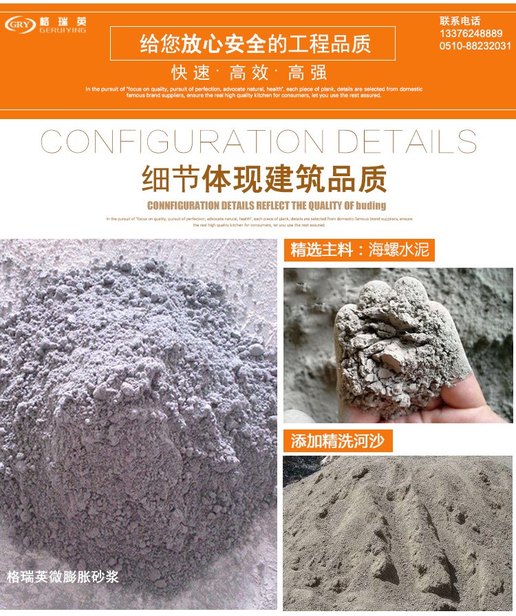 具有自流性好,快硬、早強、高強、無收縮、微膨脹;無毒、無害、耐老化、對水質及周圍環境無污染,自密性好、防銹等特點。